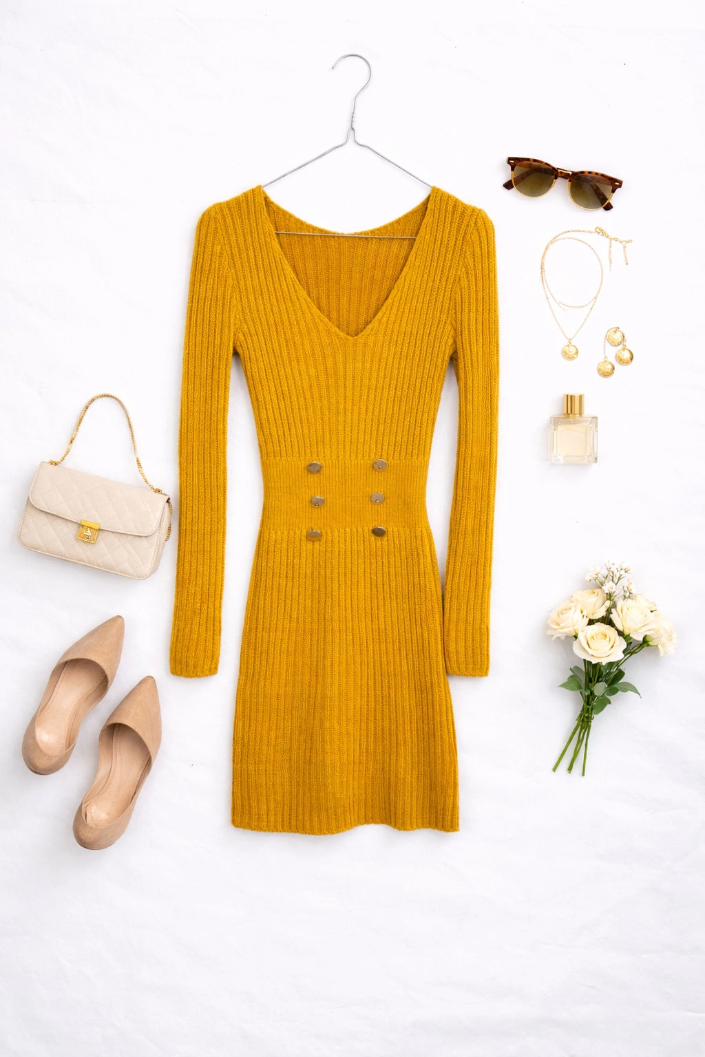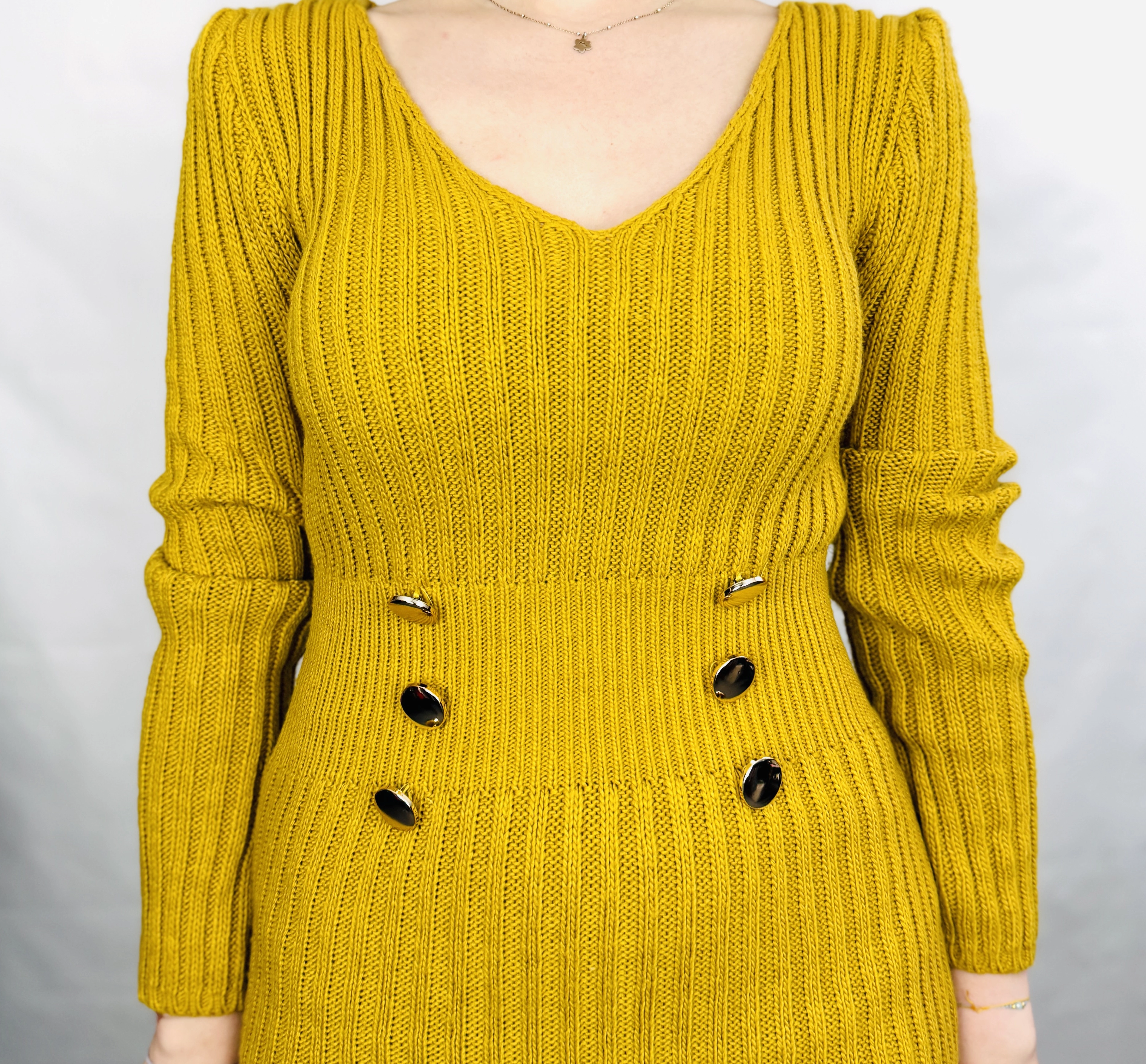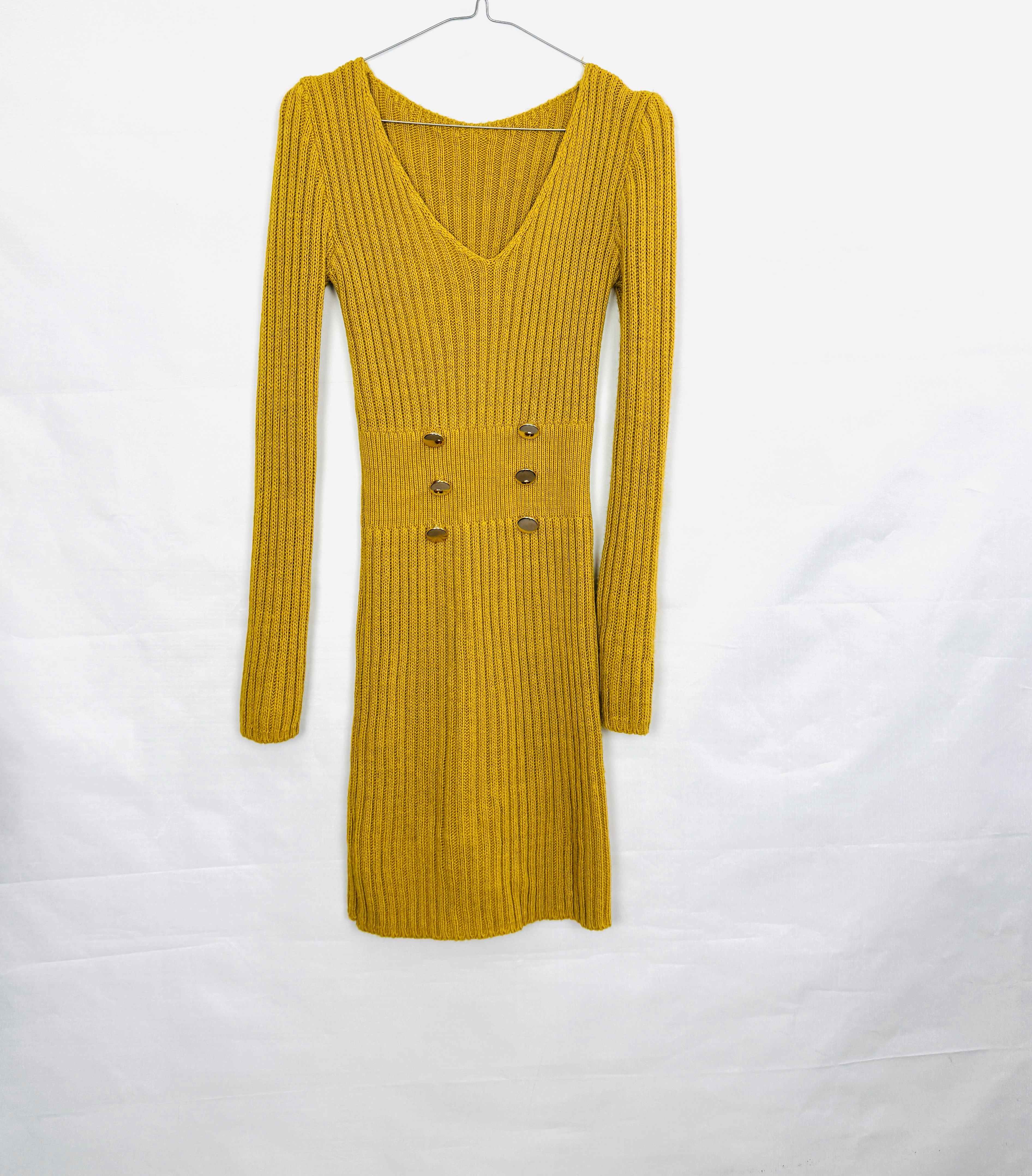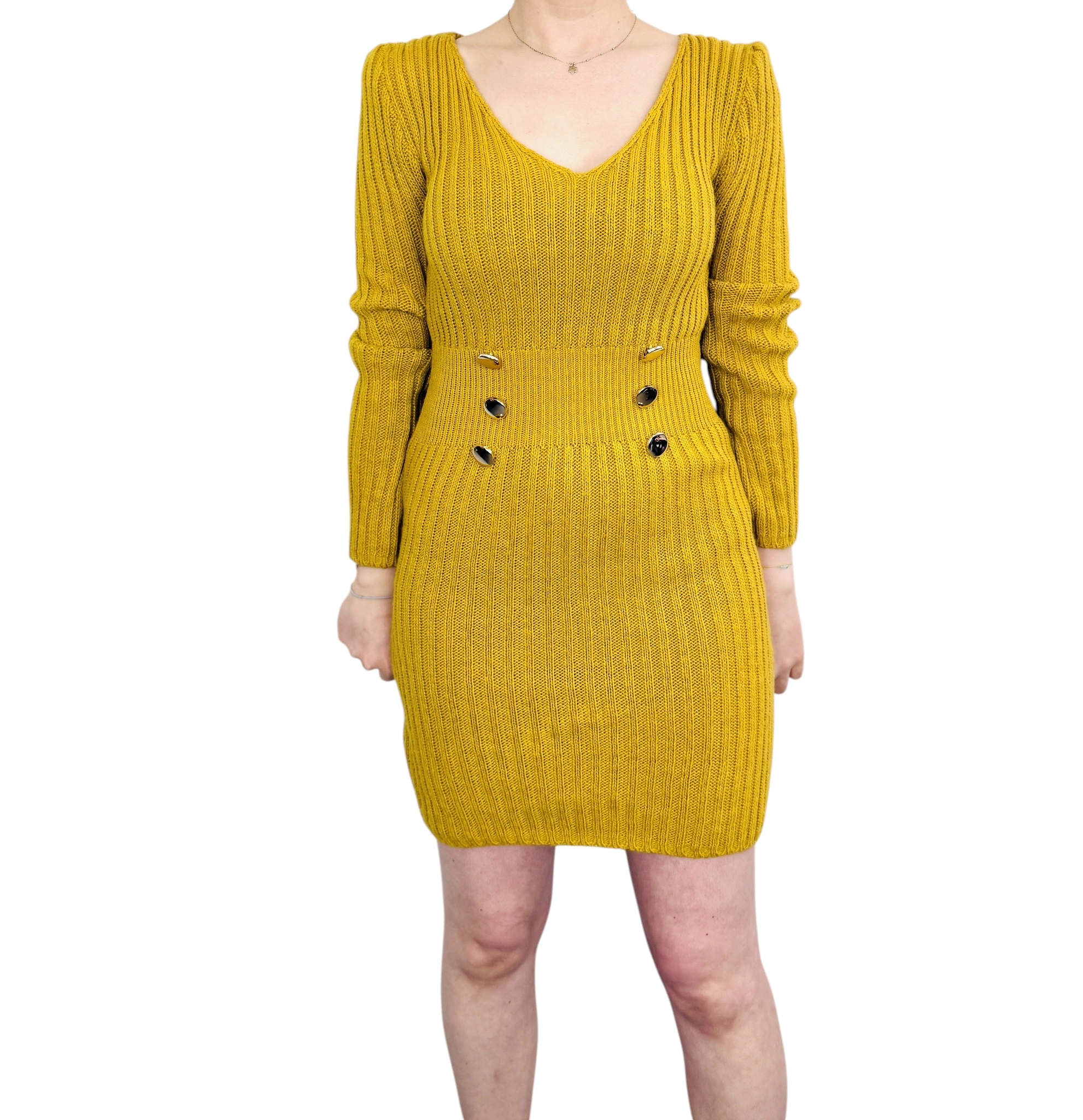 Żółta sweterkowa sukienka z guzikami XS 34