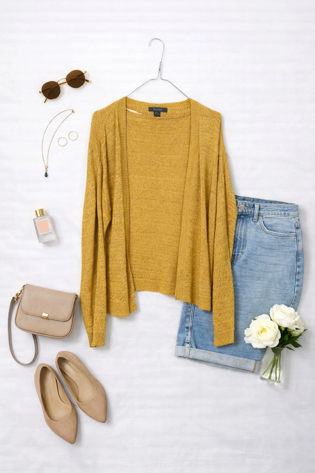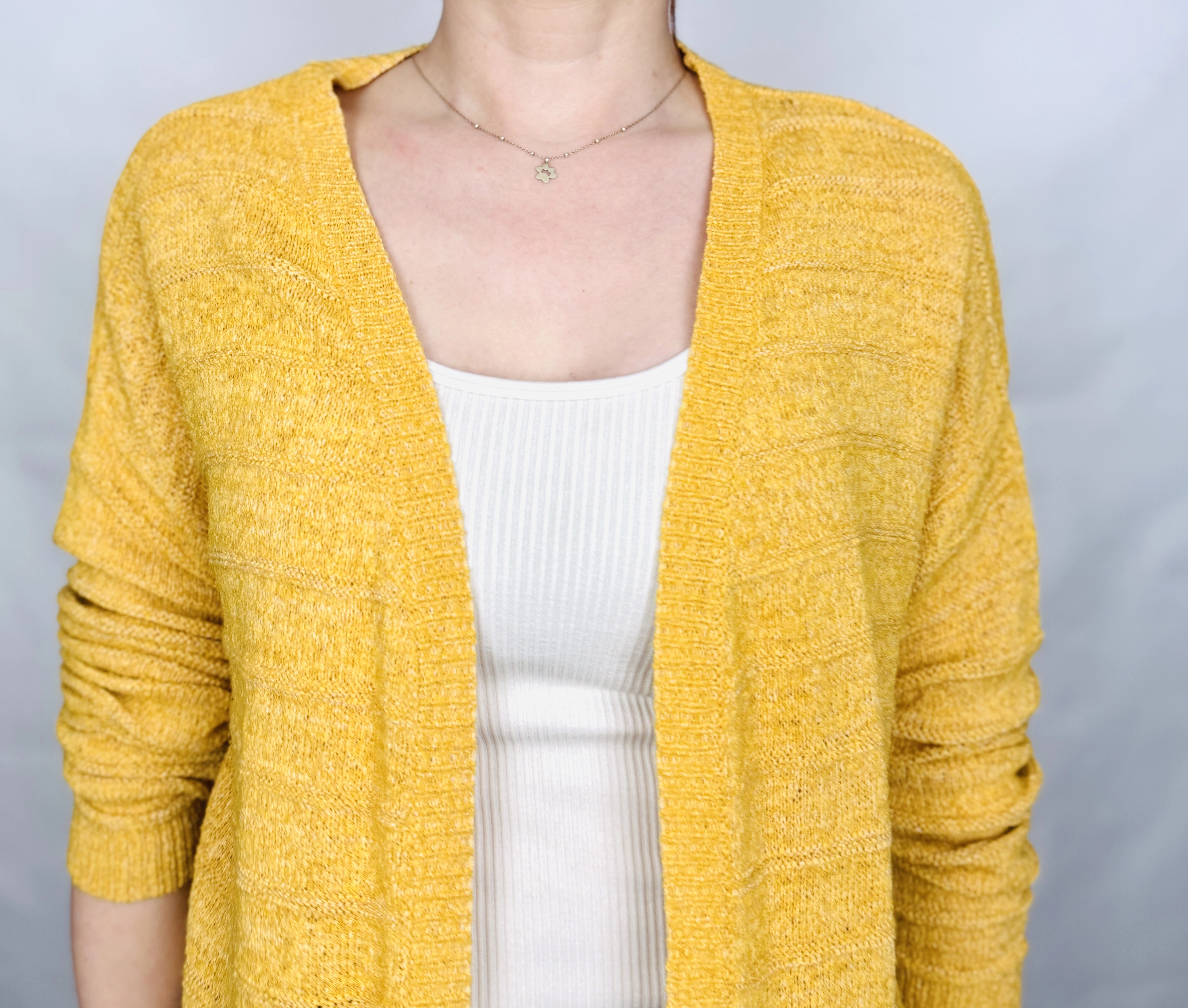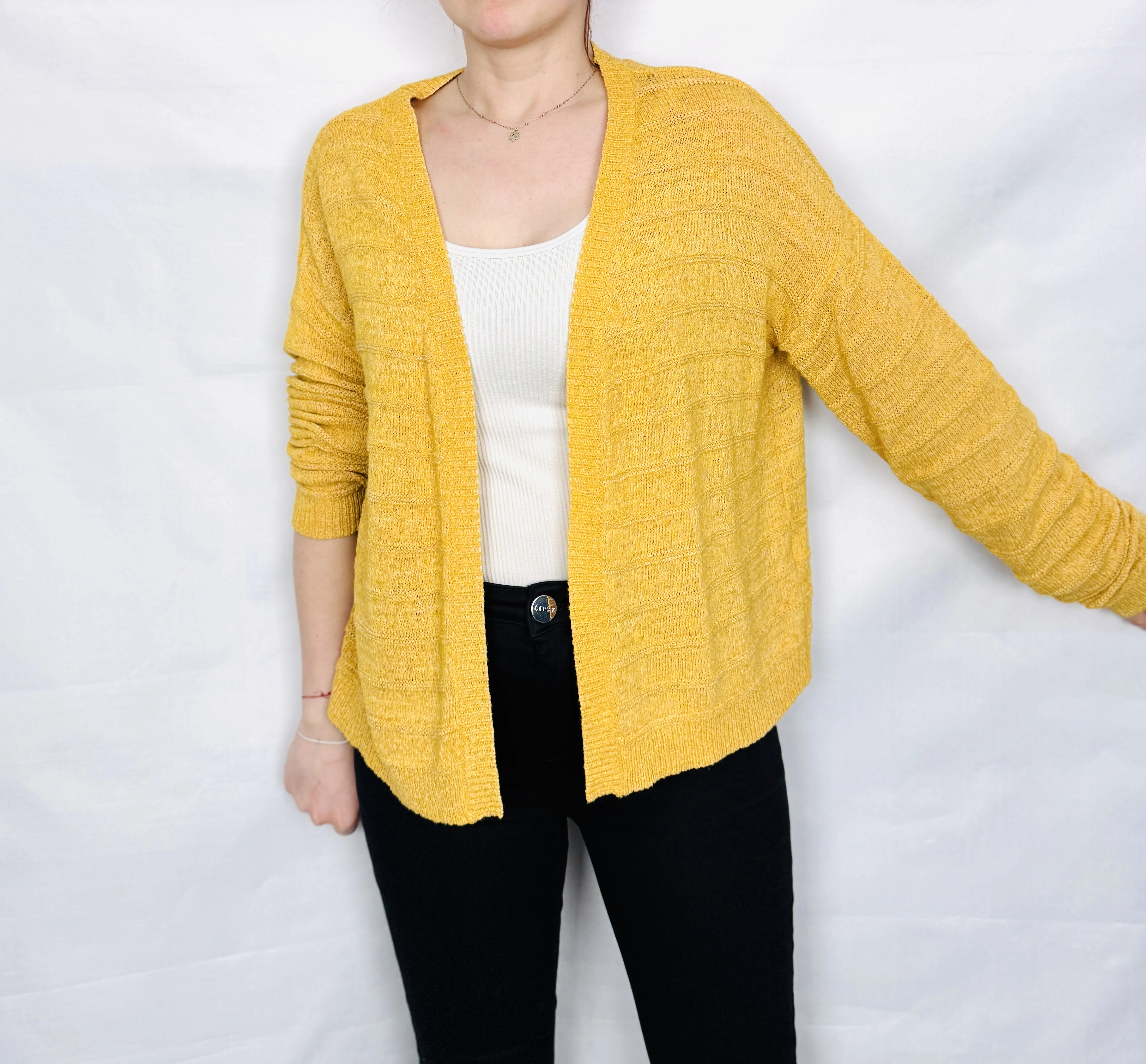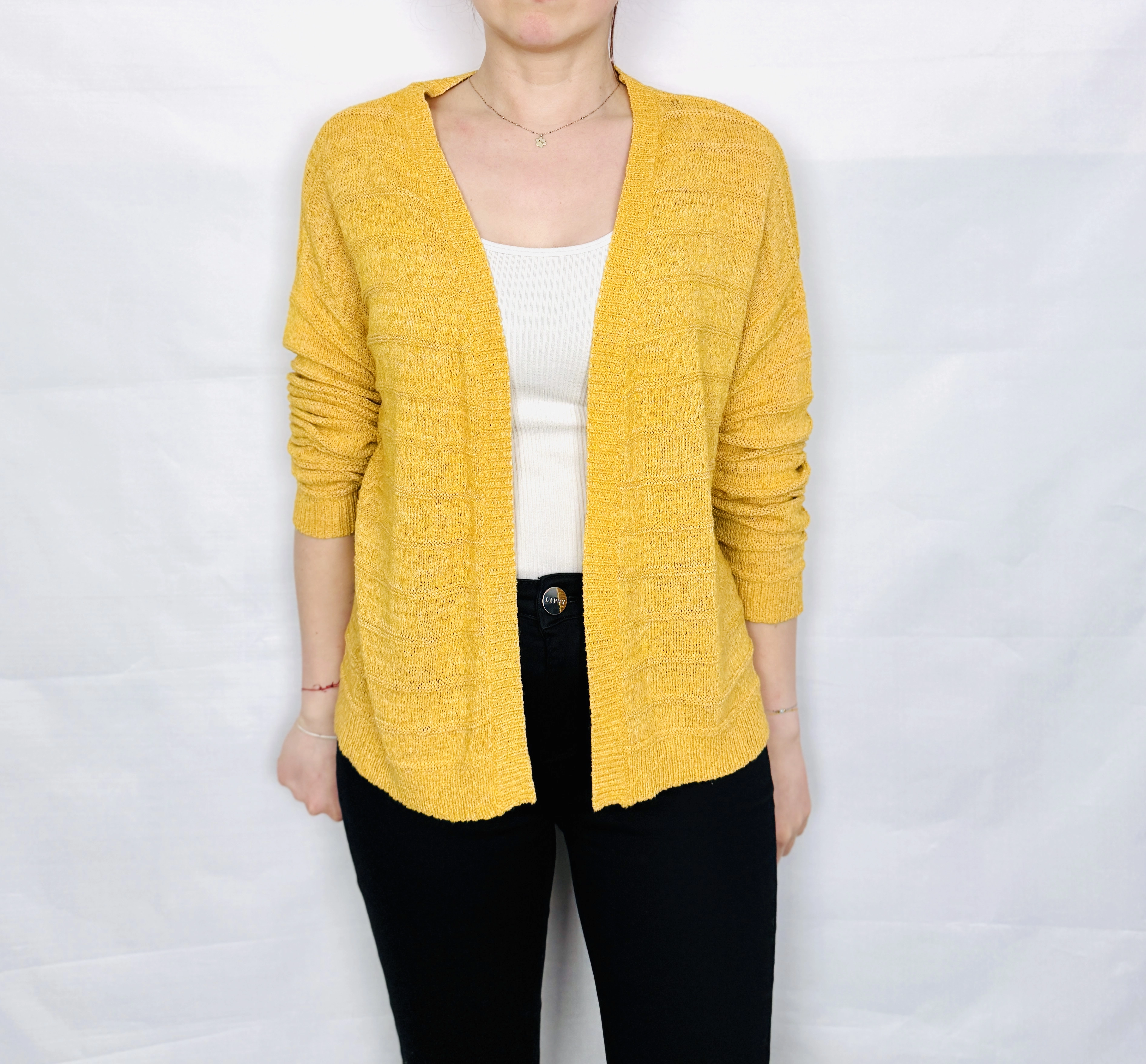 Żółty sweter narzutka o luźnym kroju M/L 38/40